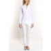 Oxford, fitted through the waist. V-neck, front button closure.100% cotton. Machine wash.